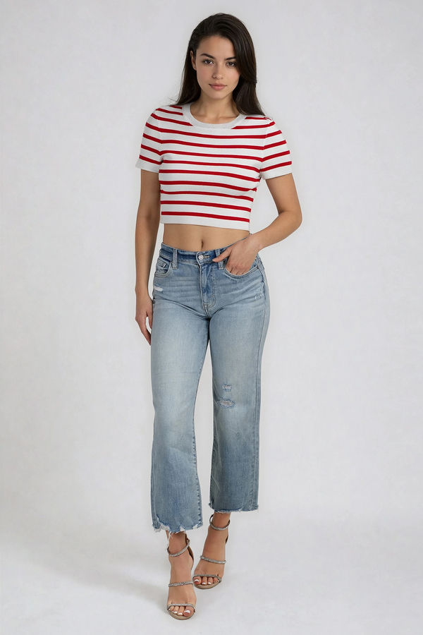 Keep it effortlessly chic with the Play It Cool Stripe Crop Top in White/Red, your go-to knit for coastal muse vibes. Featuring bold stripes, a fitted crop cut, and comfy knit stretch, this top nails that casual-but-cute look. Perfect for pairing with denim or skirts, it’s the ultimate piece to keep your style fresh, flirty, and ready for anything.