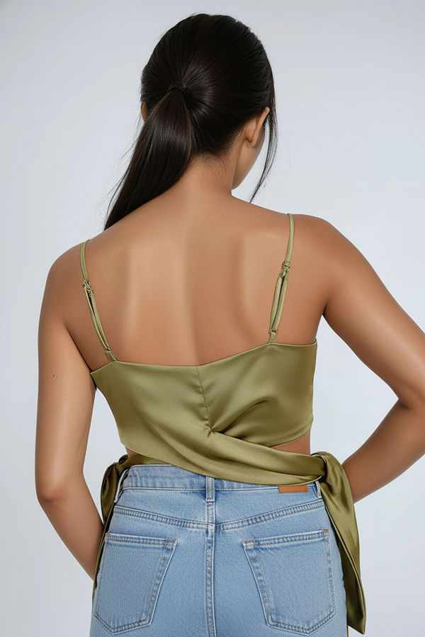 Own the moment in the Lush Charm Satin Cami Top in Capers — sleek, silky, and made for every vibe. Its luxe satin finish, delicate straps, and waist-wrapping tie detail create a flattering fit that’s both playful and polished. Pair it with jeans for a casual-chic look or style it up for night-out glam — this cami is your go-to for effortless shine.