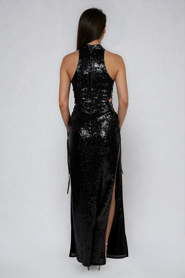 Vogue Allure Lace Up Sequin Maxi Dress - Black