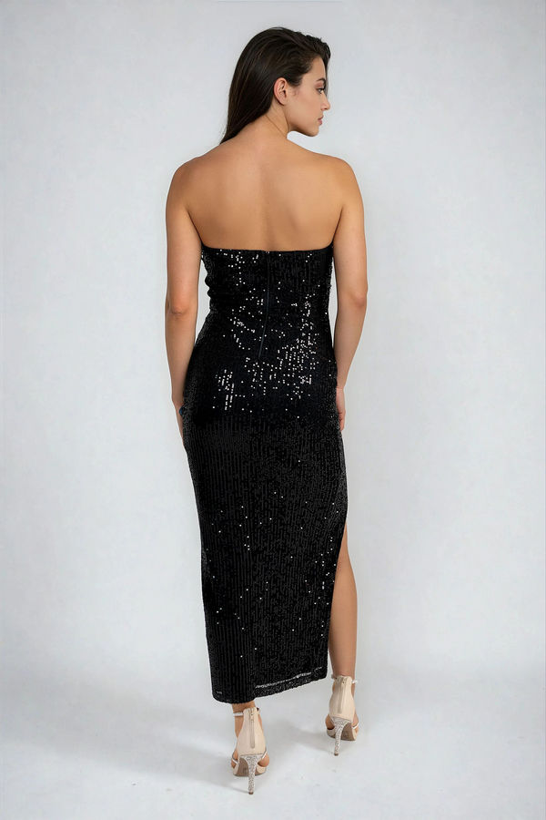 Own the spotlight in the Divine Aura Lace Up Sequin Midi Dress in Black. Featuring a strapless neckline, daring lace-up front and slit, and shimmering sequin finish, this midi was made for unforgettable entrances. The curve-hugging silhouette brings sultry sophistication, while the bold details add just the right amount of drama. Perfect for nights when ordinary simply won’t do.