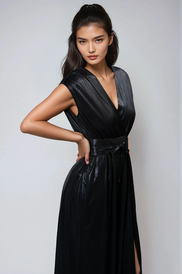 Radiate sophistication in the Daylight Glow Belted Metallic Maxi Dress Black, perfect for weddings, rooftop parties, and glamorous evening events. Featuring a shimmering metallic finish, flattering belted waist, and a daring thigh-high slit, it’s designed to catch the light with every step. Pair with strappy heels and statement jewelry for a look that’s equal parts elegance and allure.