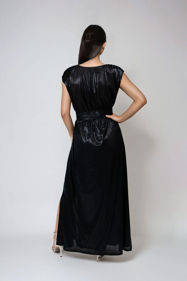 Daylight Glow Belted Metallic Maxi Dress - Black