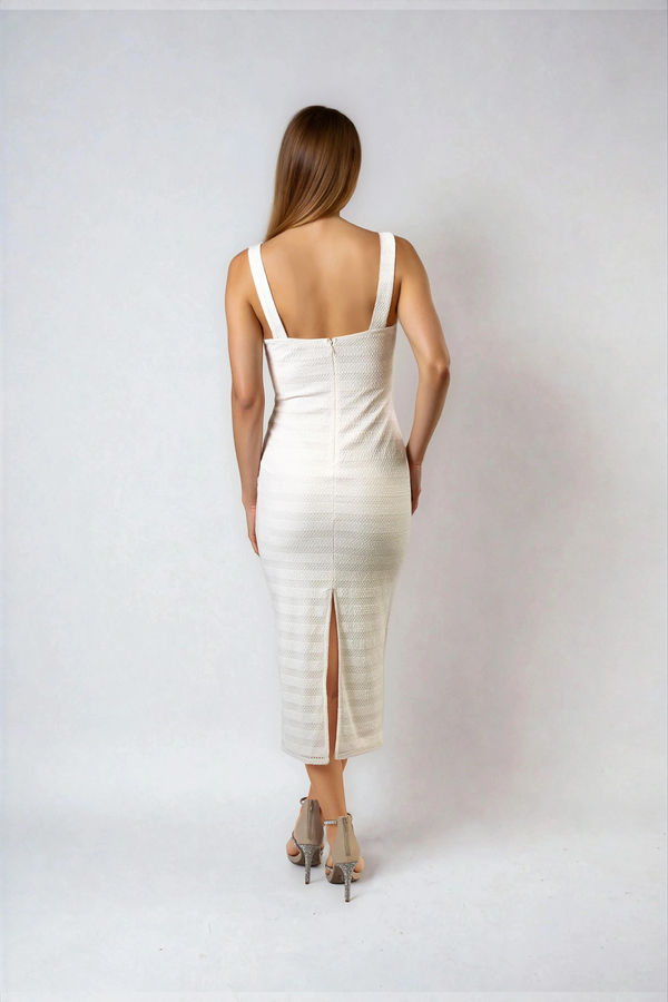 Serve curves with quiet confidence in the Look This Good Buckled Knit Midi Dress in Ivory. Perfect for rooftop drinks, birthdays, or gallery nights, it features a square neckline, thick buckle shoulder straps, and a body-hugging ribbed knit that flatters every inch. The midi-length hem is finished with a subtle back slit and hidden zip closure. Sleek, structured, and impossible to ignore.