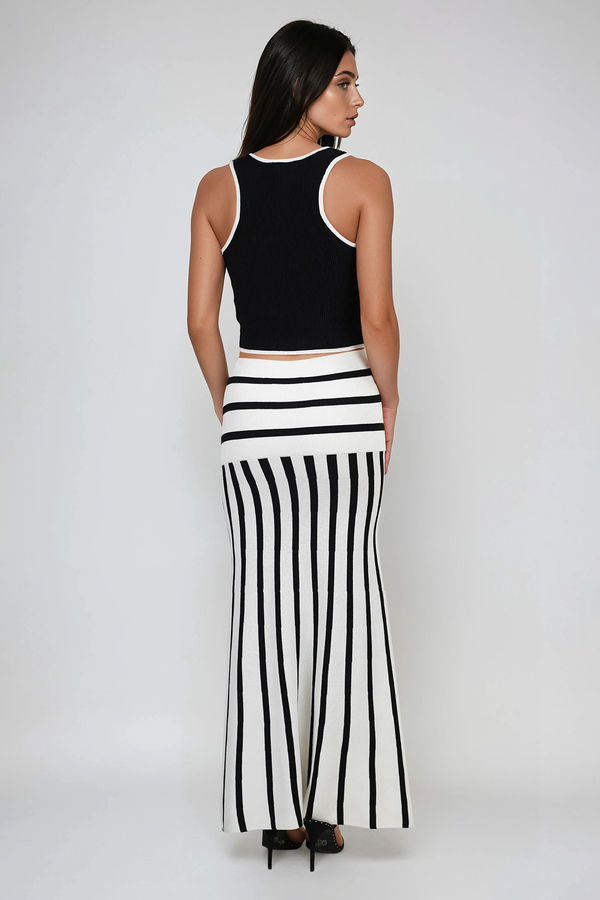Stripe It Right Knit Maxi Skirt - Off White/Black