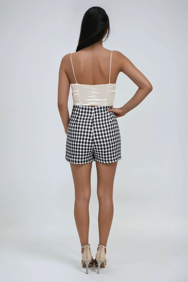Checkmate Plaid Buttoned Shorts - Black/Ivory