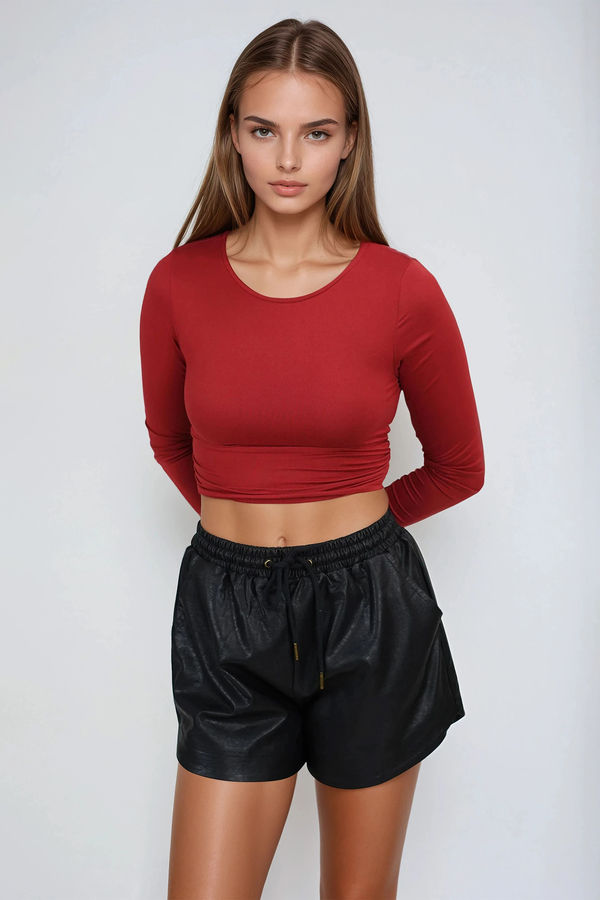 Serve up street-chic vibes with the Urban Edge Drawstring Leather Shorts in Black. Made from sleek faux leather, these shorts feature an easy elastic waistband with a drawstring tie, side pockets for that laid-back cool, and a curved hemline that keeps it effortlessly stylish. Pair them with your favorite tee or a bold crop top—these are the shorts that take casual to iconic.