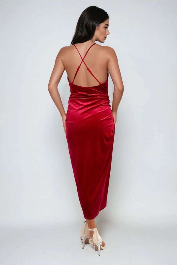 Luxe Desire Velvet Bodycon Midi Dress - Burgundy