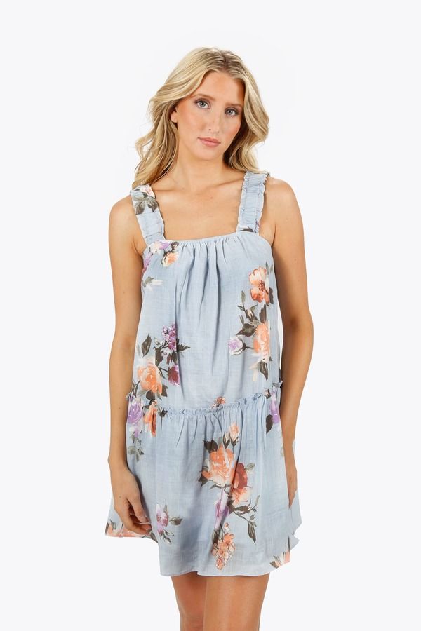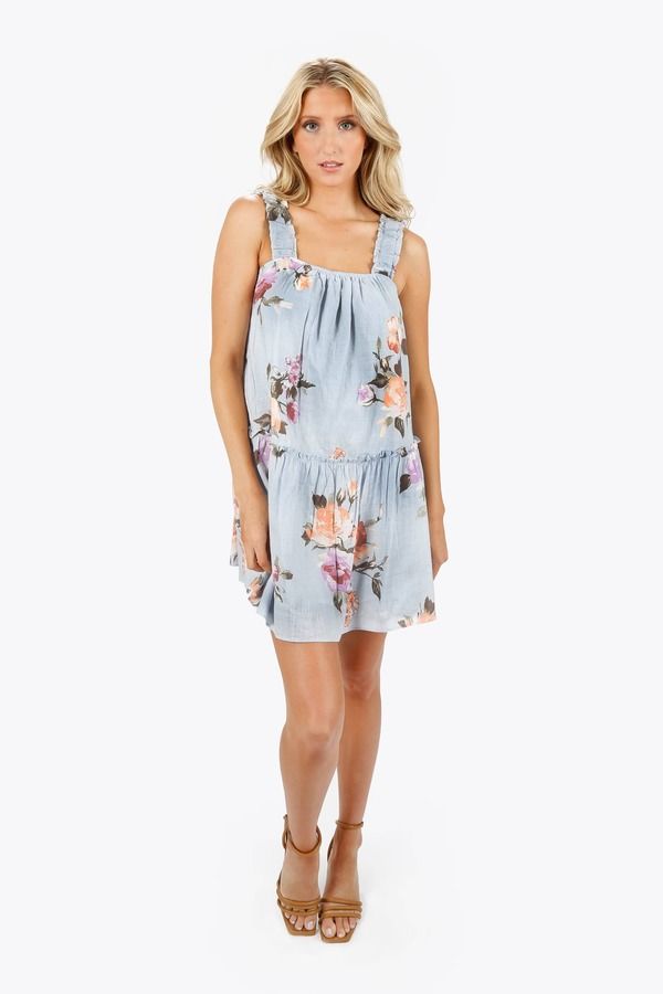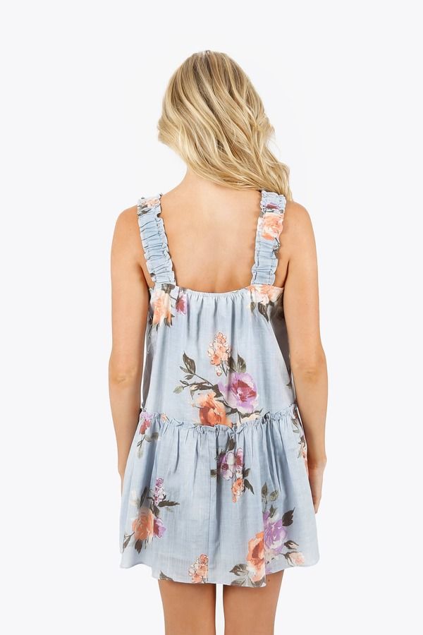 Feels Like Summer Floral Slit Mini Dress - Sky Blue