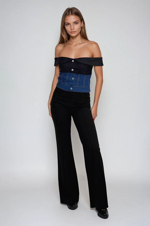 Chic Fusion Denim Top in Denim is the ultimate statement-maker for your day-to-night looks. Designed with a bold off-shoulder neckline, contrast denim paneling, and chic button-front detail, this top blends edgy vibes with feminine flair. Perfect for pairing with high-waisted jeans or a sleek skirt, it’s versatile enough to take you from brunch to rooftop drinks. Make every outfit unforgettable with this daring yet effortlessly cool piece.
