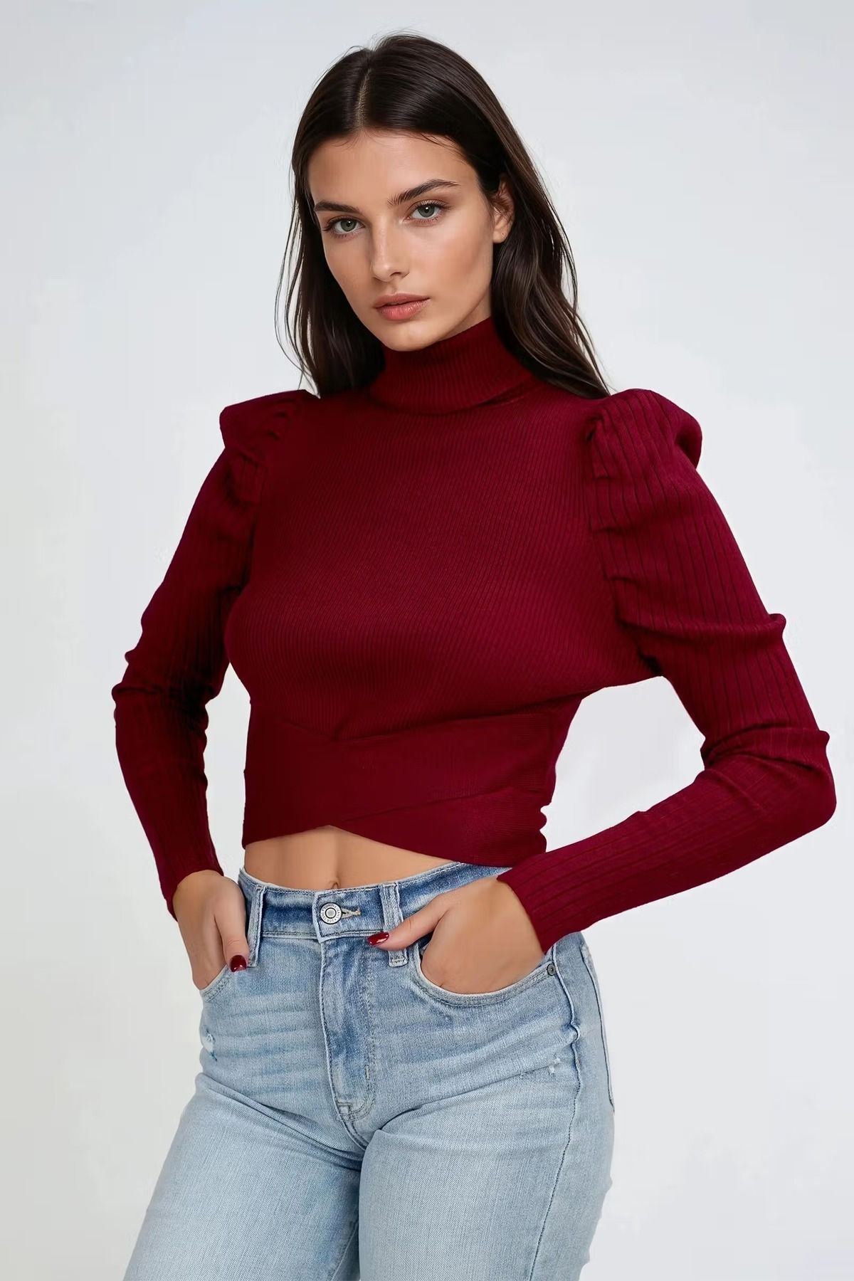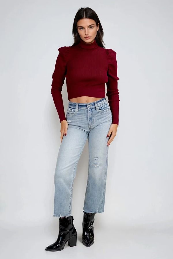 Elevate your cool-weather looks with the Sleek Charm Turtleneck Top in Wine. Designed with a figure-flattering ribbed knit, chic puffed sleeves, and a cropped cut, this top blends cozy vibes with statement-making style. The high neckline keeps it polished, while the modern fit adds that touch of edge. Pair it with jeans for daytime cool or leather pants for night-out glam—your new go-to for effortless confidence.
