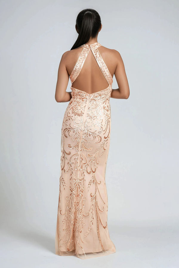 Luxe Majesty Embroidered Sequin Maxi Dress - Rose Gold
