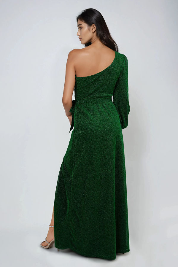 Electric Touch One Shoulder Slit Maxi Dress - Green