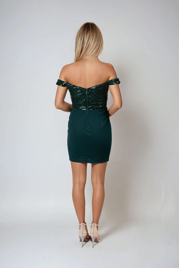 Endless Love Sequin Off Shoulder Mini Dress - Emerald