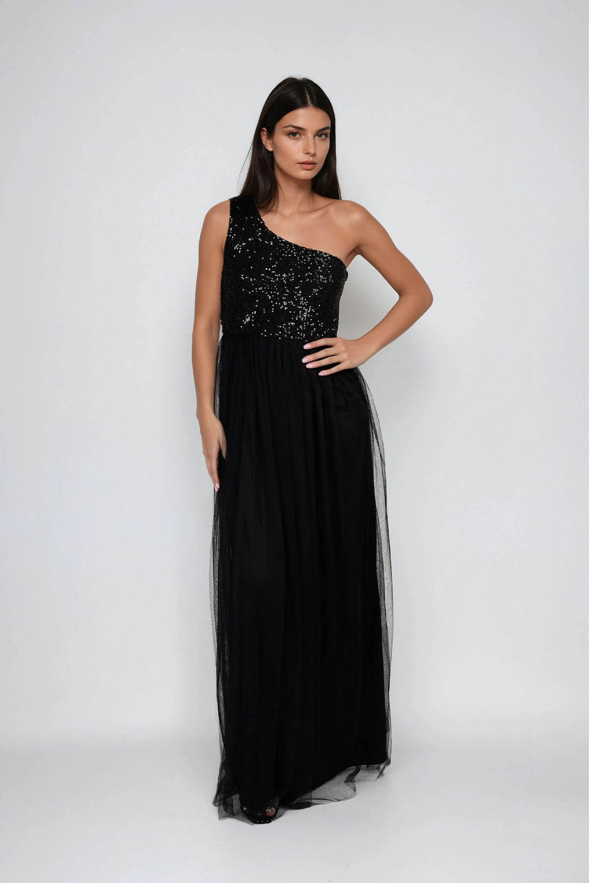 Enchanted Love Sequin Tulle Maxi Dress - Black