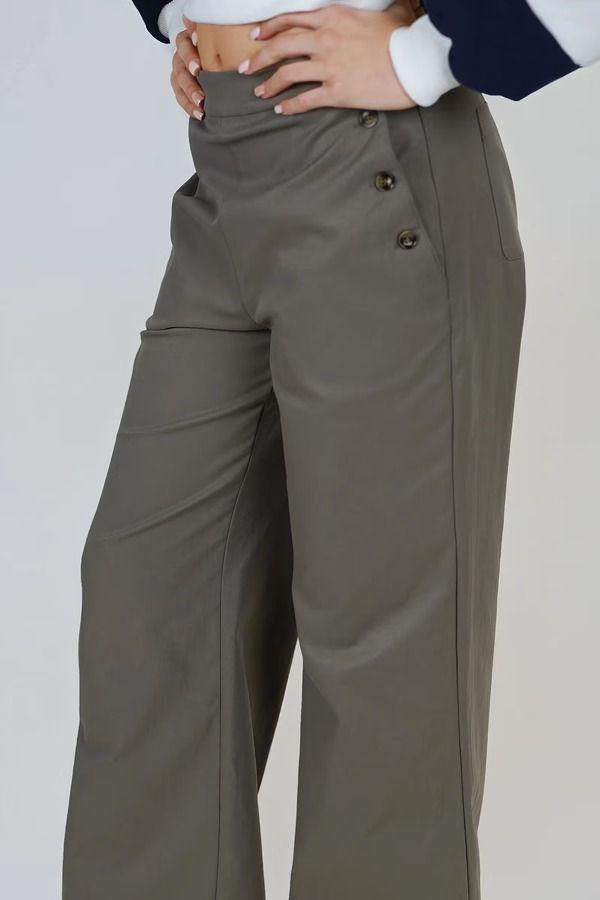 Drift Away Side Buttoned Straight Pants - Dark Olive