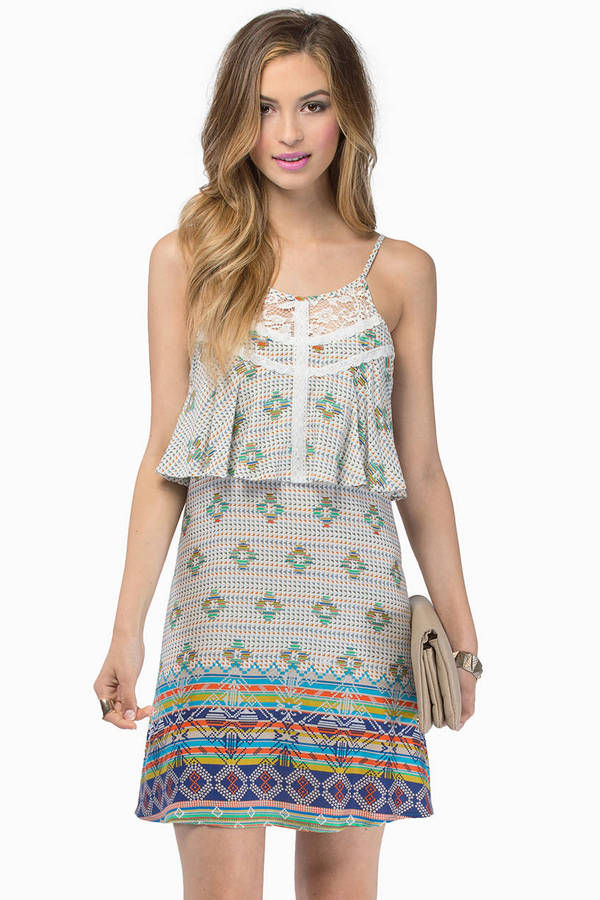 Love At Last Lace Tiered Mini Dress - Ivory Multi