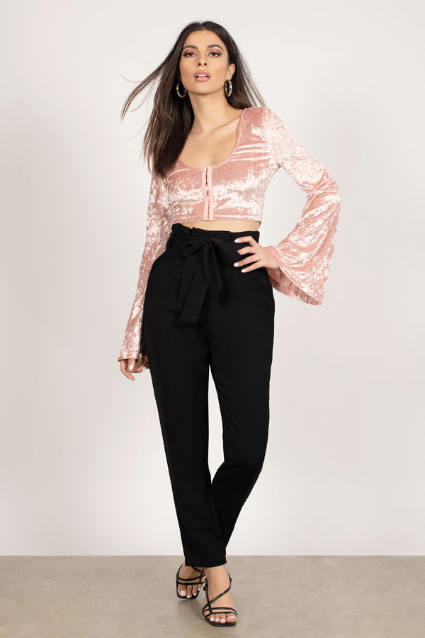 Description Elevate your look with the Witching Hour Crop Top in Blush! This enchanting piece, crafted from plush, crushed velvet, features a daring cropped fit and dramatic bell sleeves for a touch of vintage glamour. The front hook-and-eye closures add a hint of edginess, making it the ultimate statement piece for nights out or special occasions. Pair it with high-waisted leather shorts or jeans, and get ready to cast a spell wherever you go!