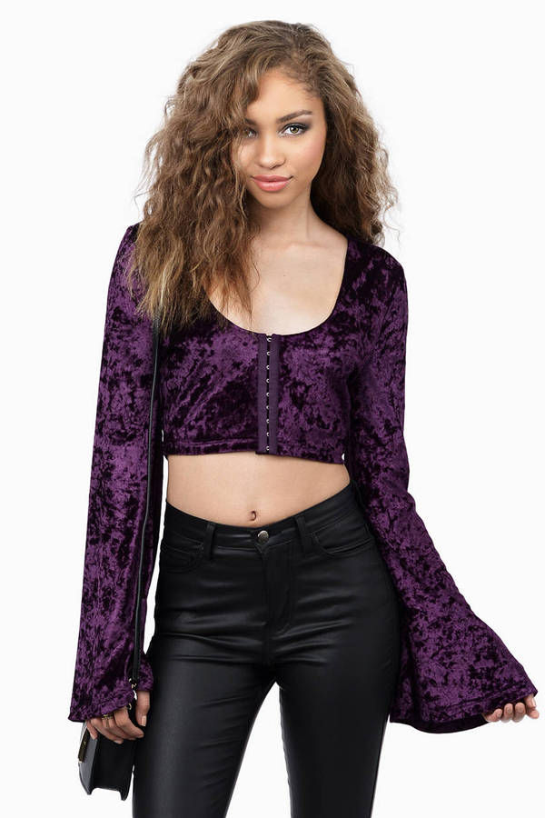 Elevate your look with the Witching Hour Crop Top in Plum! This enchanting piece, crafted from plush, crushed velvet, features a daring cropped fit and dramatic bell sleeves for a touch of vintage glamour. The front hook-and-eye closures add a hint of edginess, making it the ultimate statement piece for nights out or special occasions. Pair it with high-waisted leather shorts or jeans, and get ready to cast a spell wherever you go!