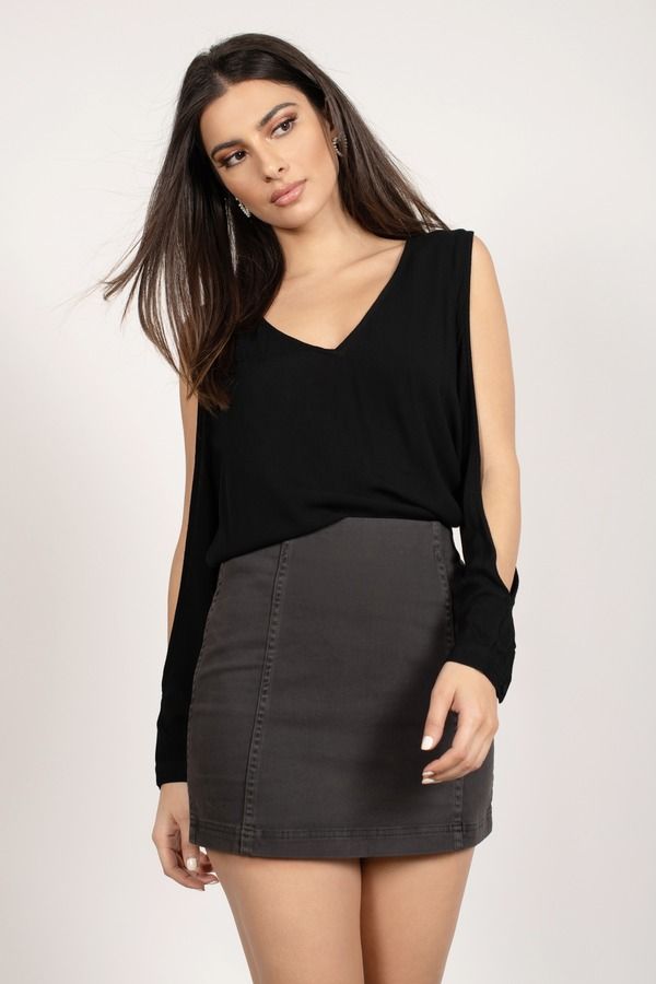Give ‘em the cold shoulder in the Maci Cold Shoulder Blouse in Black! With a plunging neckline and long sleeves featuring edgy cold shoulder cutouts, this top adds a sexy touch to any outfit. Pair it with a corduroy skirt and stilettos for a chic, easy look that transitions from happy hour to dinner with ease. Ready to turn heads and steal the spotlight? This blouse has got you covered!