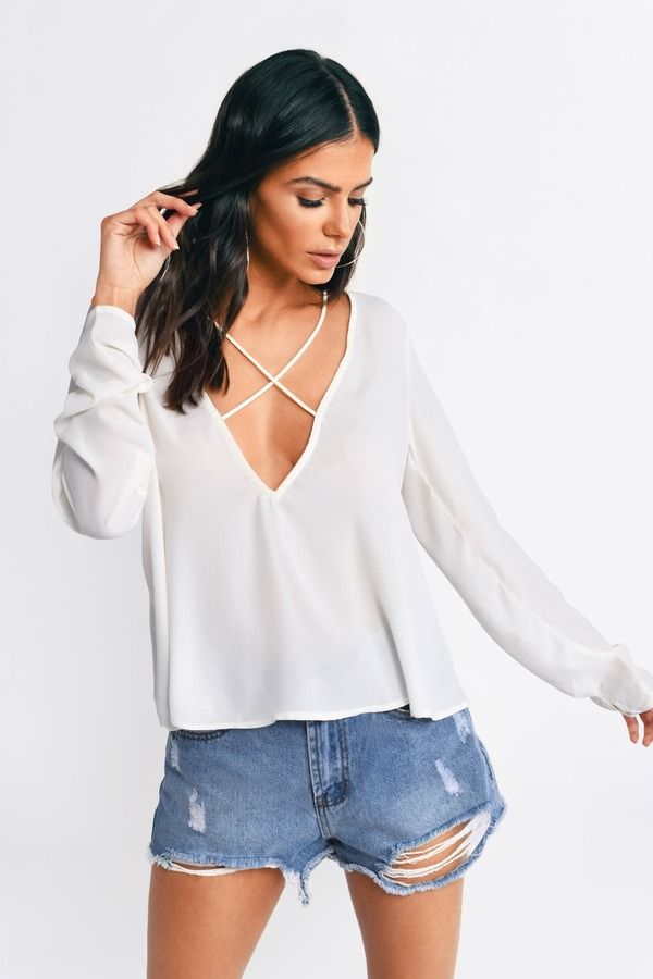 Own the day in the Cream Zohar Plunging Blouse! This effortlessly chic top features a deep V-neck with criss-cross straps, adding an edgy touch to its flowy, swing cut design. The long sleeves and versatile style make it perfect for both casual days and night outs. Pair it with ripped denim for a laid-back, bohemian vibe that transitions seamlessly from day to evening.