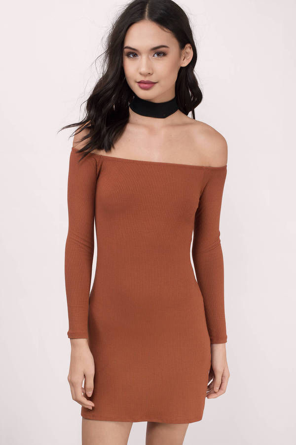 Jackie Ribbed Knit Off The Shoulder Mini Dress - Rust