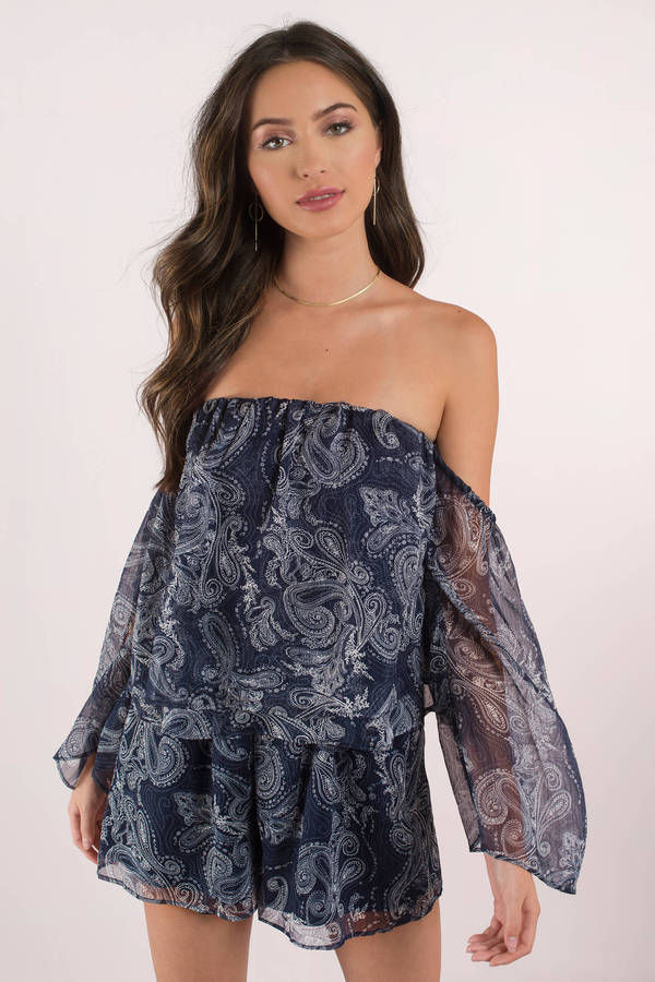 The Jetset Diaries Midnight Off The Shoulder Romper - Midnight