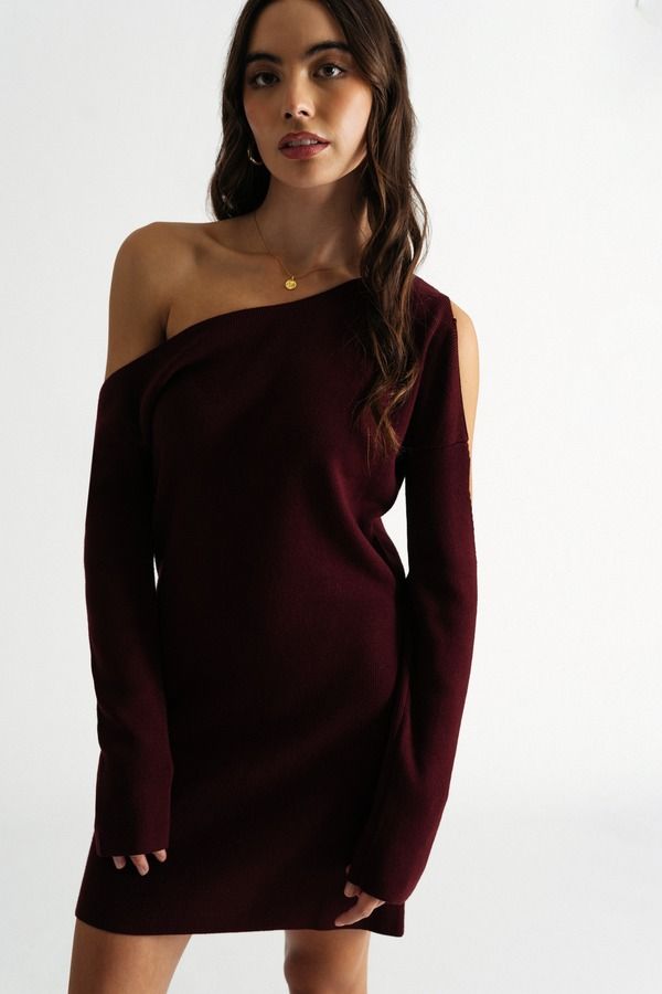 Olivia One Side Sleeve Sweater Mini Dress - Wine