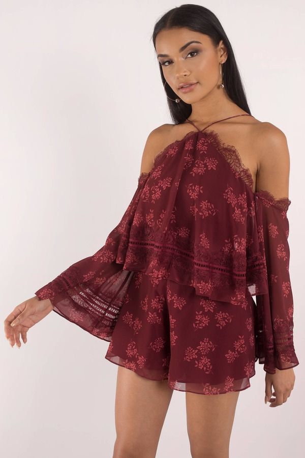 Keepsake Moonlight Cold Shoulder Romper - Wine