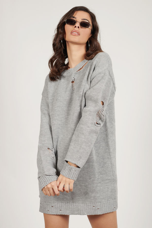 Kim Distressed Sweater Mini Dress - Heather Grey