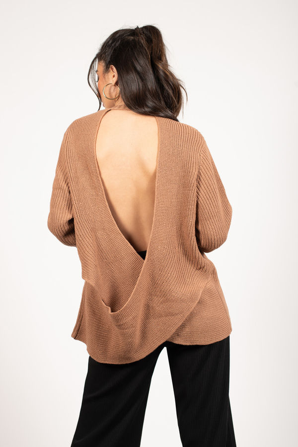Wink Back Open Back Knit Midi Dress - Cappucino