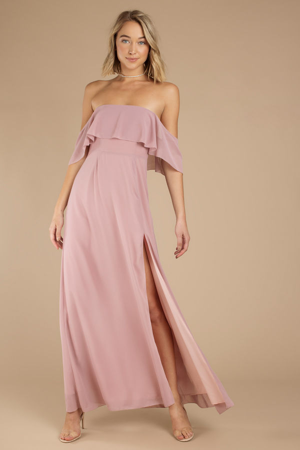 Into You Off The Shoulder High Slit Maxi Dress - Mauve