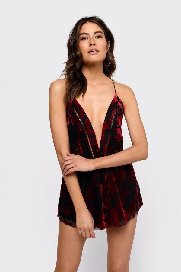 The holidays never looked sexier. The Burn Baby Black Velvet Romper features a burnout velvet with a v-neckline, crossing back straps, fitted waist, and fully lined interior. This criss cross romper will look extra stunning with stiletto heels and mistletoe.