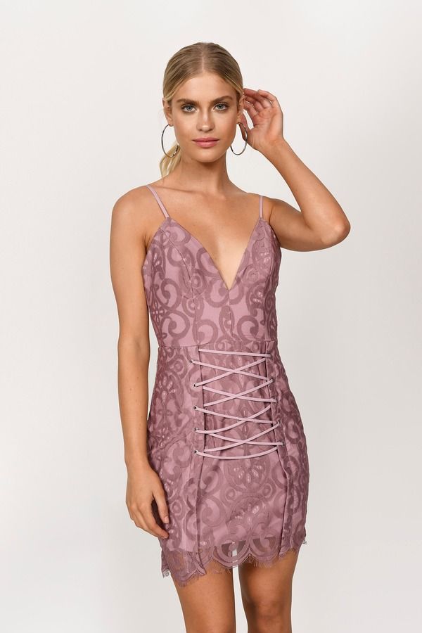 Steal the spotlight in the Taylor Lace Plunging Mini Dress in Dark Rose! Get all dolled up in this scalloped dark rose mini dress featuring a daring plunging neckline and intricate lace detailing that exudes confidence and allure. With a chic front lace-up detail, this bodycon design hugs your curves perfectly, making date night never look sexier. Pair it with statement heels and bold accessories to complete your look, and get ready to turn heads wherever you go!