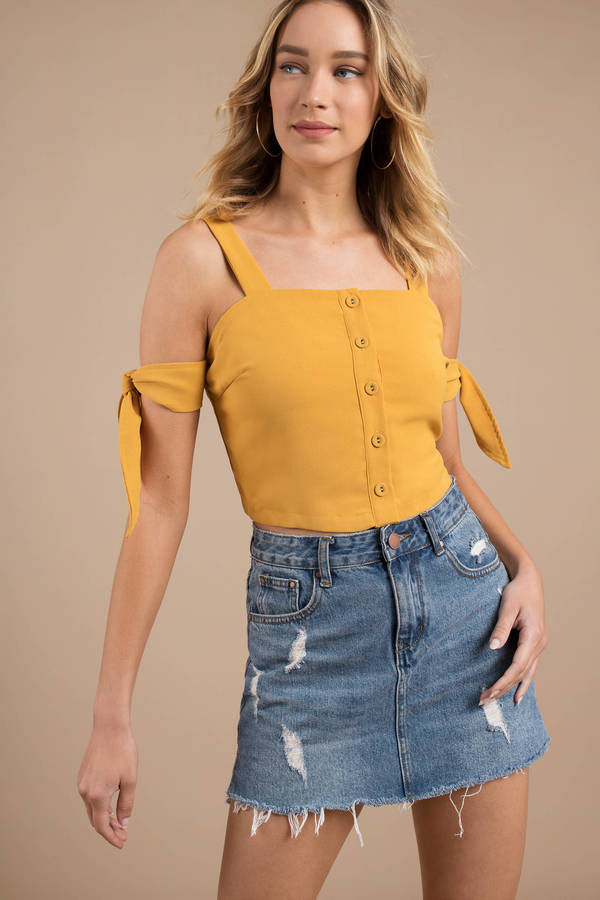 Light up your look with the Moon River Sunshine Crop Top in Marigold! This vibrant crop top features playful sleeve ties and a charming front button detail that adds the perfect pop of fun. Whether you're dressing up for a day out or a night in the spotlight, this top is your go-to for adding a splash of sunshine and flair to any outfit. Get ready to shine and make a statement wherever you go!