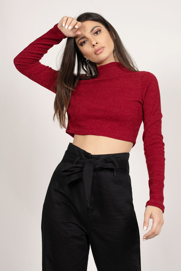 Embrace fall with the Eliza Crop Top in Wine! Featuring a chic mock neck and ribbed texture, this long sleeve top is perfect for layering under a jumpsuit or jacket or wearing solo. Versatile and cozy, it’s a must-have for your new season standbys. Pair it with anything, and you'll be set for the season ahead. Don’t miss out—this one’s a favorite!