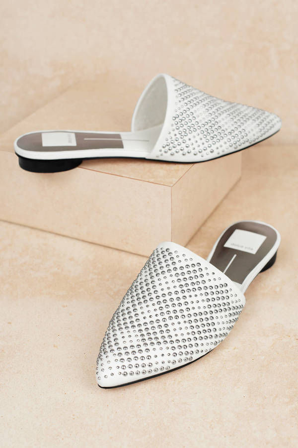 The Elvah White Studded Pointed Toe Flats from Dolce Vita calls all minimalists with a flare! Featuring a soft white leather with a padded insole and stud embellishments.