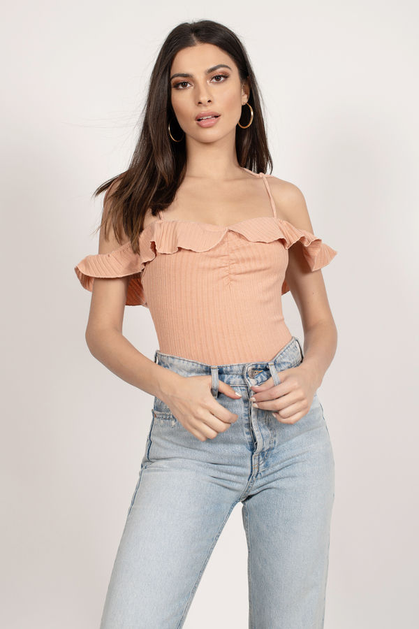 Own the spotlight in the Evelyn One Shoulder Bodysuit in Nude! Featuring playful ruffles and flattering ruching at the center bust, this ribbed bodysuit hugs you in all the right places. The cold shoulder detail adds a bold, stylish twist, perfect for pairing with your favorite shorts for a fun, weekend-ready look. You’ll love the way it fits and feels!