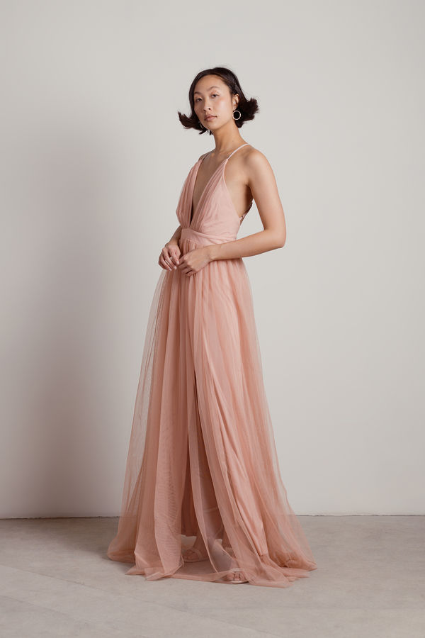 Dare to be bold in the Here To Slay Plunging High Slit Maxi Dress in Blush! With a striking plunging V neckline and a sophisticated pleated halter, this dress is all about making a statement. The airy, sheer skirt flows beautifully around you, while the thigh-high slit brings a touch of flirtiness to your ensemble. Pair it with chic ankle boots and layered jewelry to channel your inner goddess at any evening event!