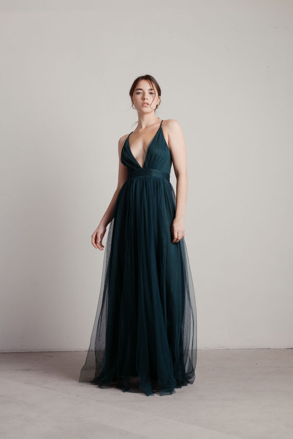 Dare to be bold in the Here To Slay Plunging High Slit Maxi Dress in Hunter Green! With a striking plunging V neckline and a sophisticated pleated halter, this dress is all about making a statement. The airy, sheer skirt flows beautifully around you, while the thigh-high slit brings a touch of flirtiness to your ensemble. Pair it with chic ankle boots and layered jewelry to channel your inner goddess at any evening event!