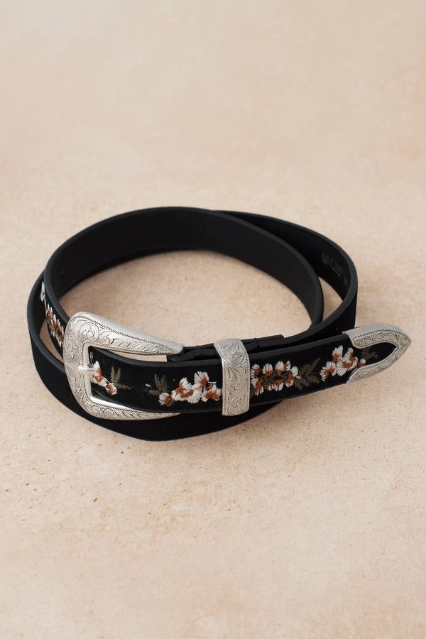Amie Black Floral Embroidered Skinny Belt