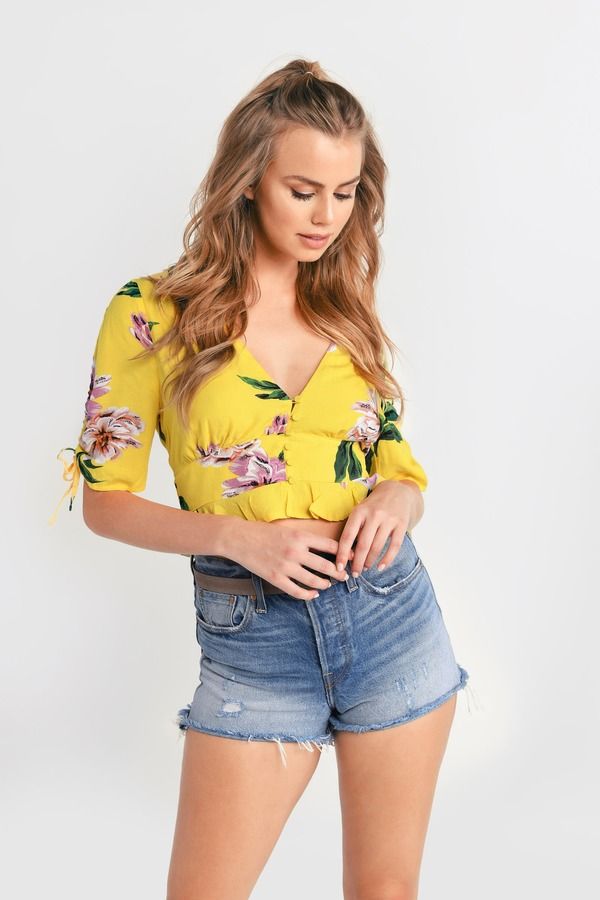 Fall in love with the Catching Feelings Floral Blouse in Yellow Multi! This dreamy blouse features a charming floral pattern, a front toggle closure, and cinched sleeve detailing for a flirty touch. The ruffled hem adds a playful finish, all crafted in a lightweight rayon weave. Perfect for casual days or brunch dates, pair it with your favorite denim or a cute mini skirt for a fun, fresh look!