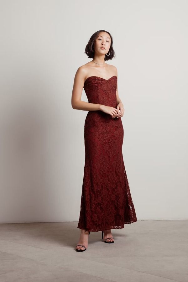 Adelyn Lace Sweetheart Maxi Dress - Wine