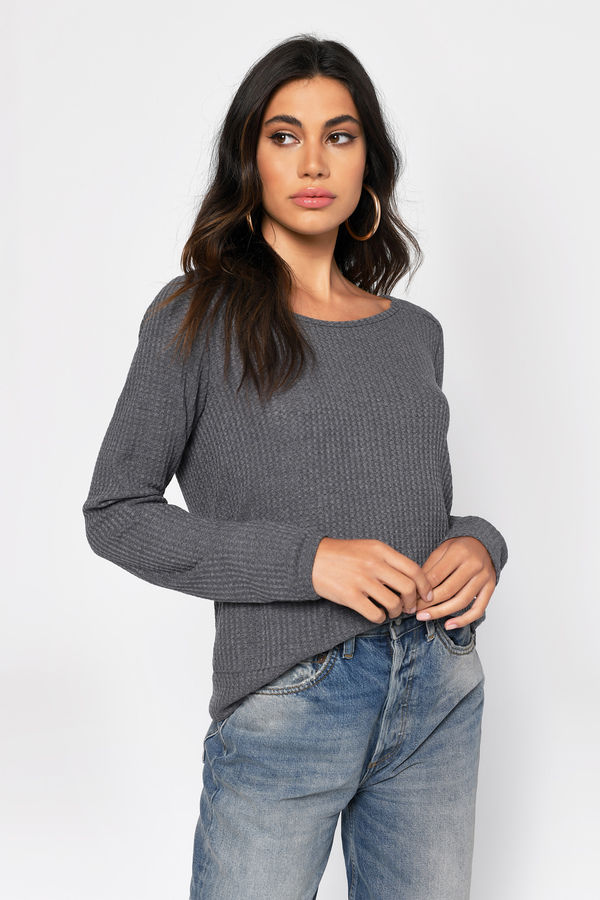 Free Butterfly Embroidered Crop Top - Heather Grey