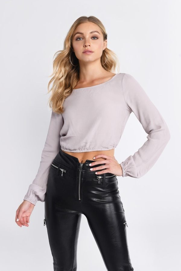 All eyes on you in the Eyes For You Open Back Top in Grey. This backless long sleeve top features a boat neckline, cropped construction, cinched sleeves and hem, support strap, and a gorgeous open surplice back. Show off the next time you go bar hoppin', and pair this evening crop top with high waisted jeans.