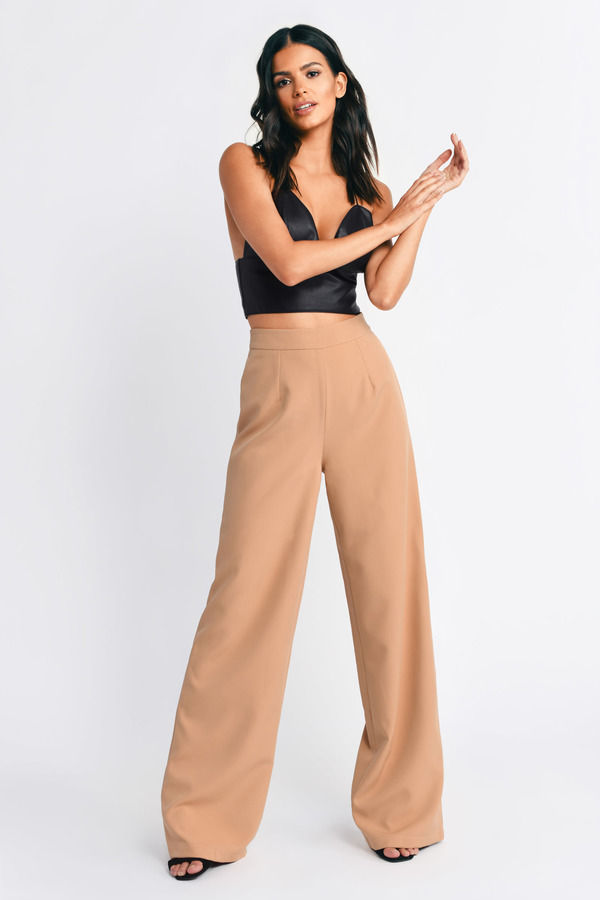 Inspire them all in the Rebel Khaki Rouser Pants. These tall wide leg trousers feature a high waisted construction, wide legs, pockets, and a nice boxy silhouette. Perfect for work and play, wear these ultra high waisted trousers with a flowy crop top.