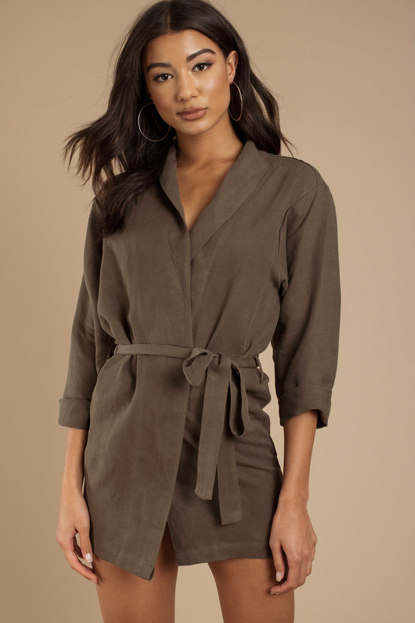 Stillwater The Ines Collared Wrap Mini Dress - Olive