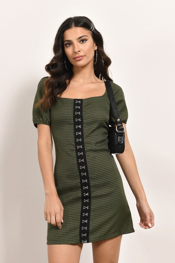 Green Dresses Plaid Dresses Short Sleeve Wedding Guest Dresses 2000s Clothing