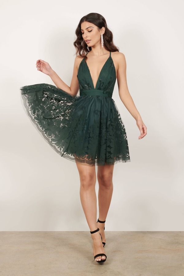 Silken Fire Plunging Tulle Mini Dress - Emerald