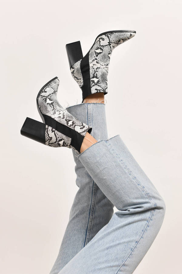 Step into adventure with the Get Lost Snakeskin Ankle Boots in White Multi! These striking ankle boots feature a bold snake print and sleek faux leather, perfect for adding a touch of wild elegance to any outfit. With 3.5-inch heels and a pointed toe, they combine stylish flair with a hint of daring. Ideal for making a statement whether you're hitting the town or exploring new horizons, these boots are your go-to for fierce, fashionable fun!