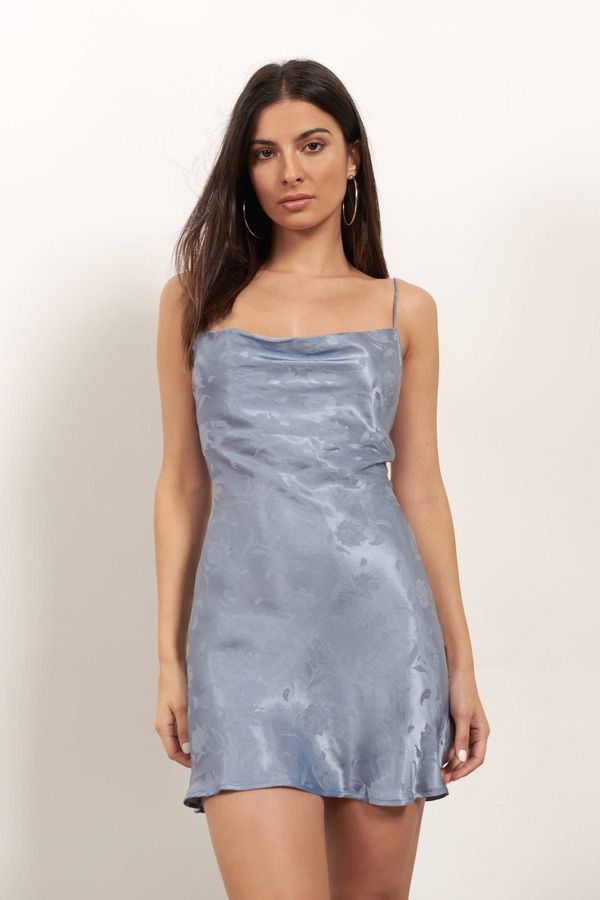 Emma Light Blue Floral Satin Jacquard Shift Dress